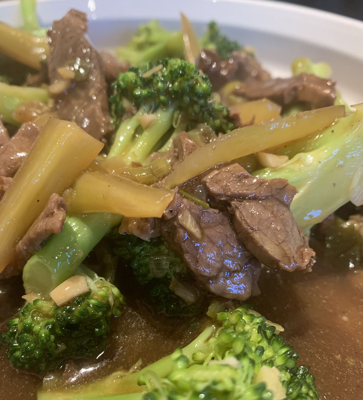 One of our favorite Chinese take-out foods is beef and broccoli. Thin strips of beef (usually flank steak) tossed with broccoli in a sweet yet salty sauce are served over noodles or rice. This is such an easy dish to make, you won’t do take out again. Use leftover steak or roast to save yourself some time cooking.