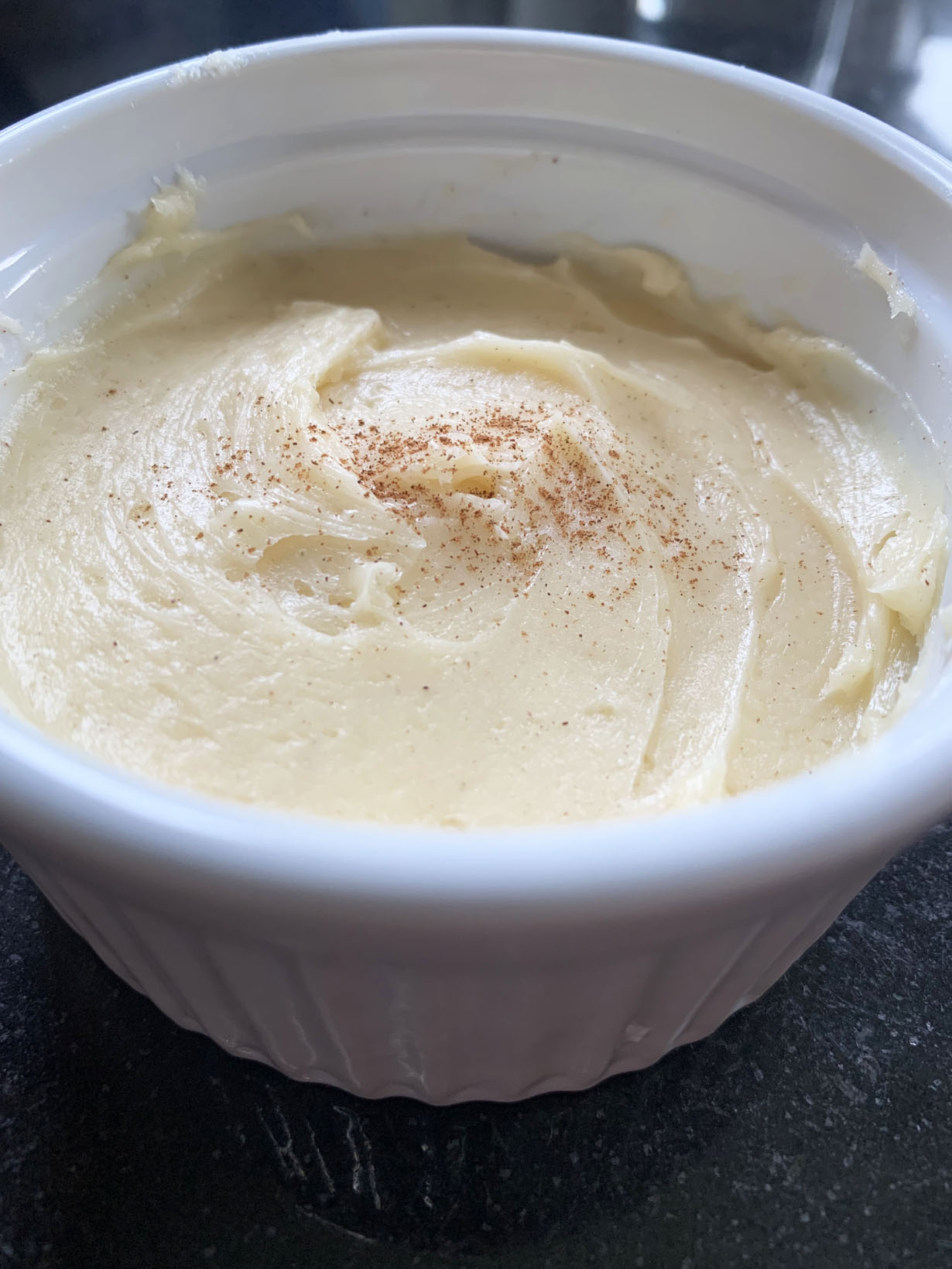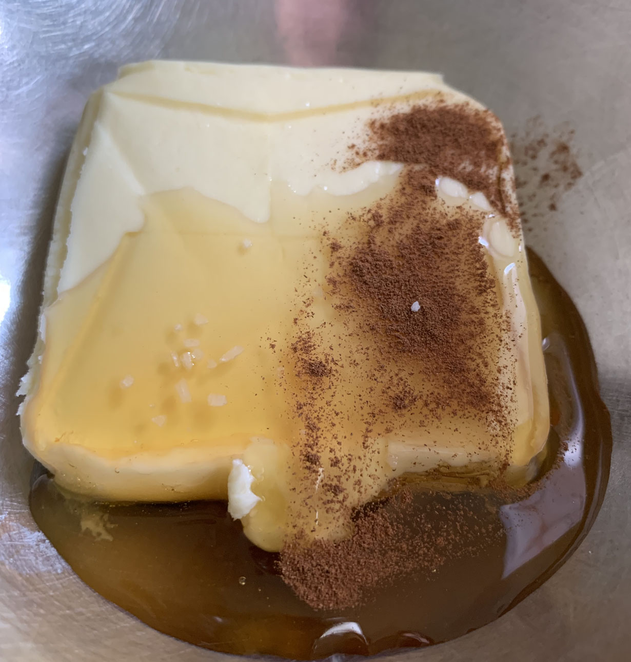 While the dough is rising, you can prepare the cinnamon butter. Add all the ingredients in a bowl and blend together using a fork just until the sugar melts in (if you mix with a hand mixer, the sugar goes everywhere). Make sure your bowl is deep. Beat with a hand mixer until the butter is light and fluffy and all the ingredients are incorporated. Place in a serving bowl and dust with ground cinnamon. Set aside.