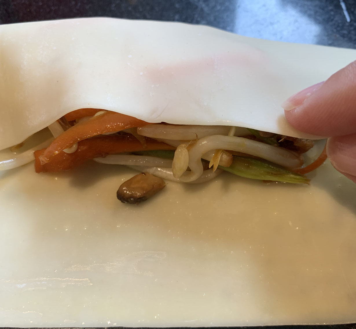I just love good Chinese take out and egg rolls are one of my favorites. I especially love egg rolls that are made with bean sprouts rather than cabbage. I’m sure my attempt at egg rolls will make every Chinese person laugh, but I did enjoy eating them. Making them is not as hard as you think – it’s all prep ahead of time. I made mine vegetarian, but you can certainly add cooked shrimp or pork.