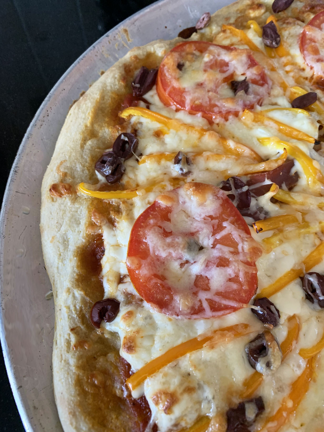 Pizza is the most popular dish for take-out food in the world. You’d be surprised to see it’s not so hard to make it yourself. The toppings are up to your imagination, or as we do in our kitchen, whatever is in the refrigerator. Experiment with grilled chicken, add bacon, hot peppers, and feta. The combinations are limitless!