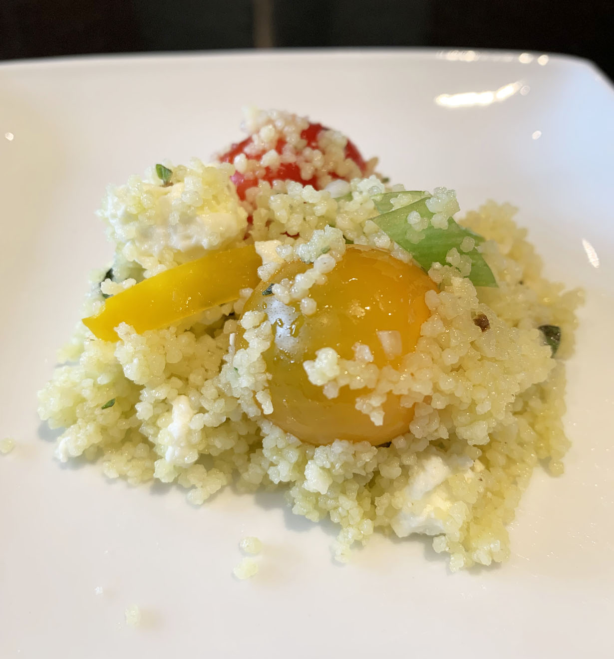 Couscous is technically a pasta granule and is a blank canvas for any dressing you want. This recipe is reminiscent of a Greek salad. The freshness of the grape tomatoes and herbs works well with the lemon-garlic based dressing. Serve on its own for lunch or as a side.