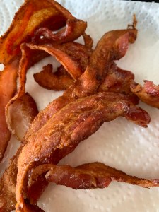 Note: for a vegetarian version of this dish, omit the bacon and use vegetable oil for frying.
