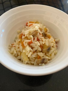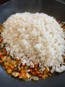 A fast and easy side dish that works well with chicken or fish, this rice dish can be made ahead of time and just reheated. This rice dish uses a good amount of oil that, combined with the vegetables, gives the rice exceptional flavor and moistness.