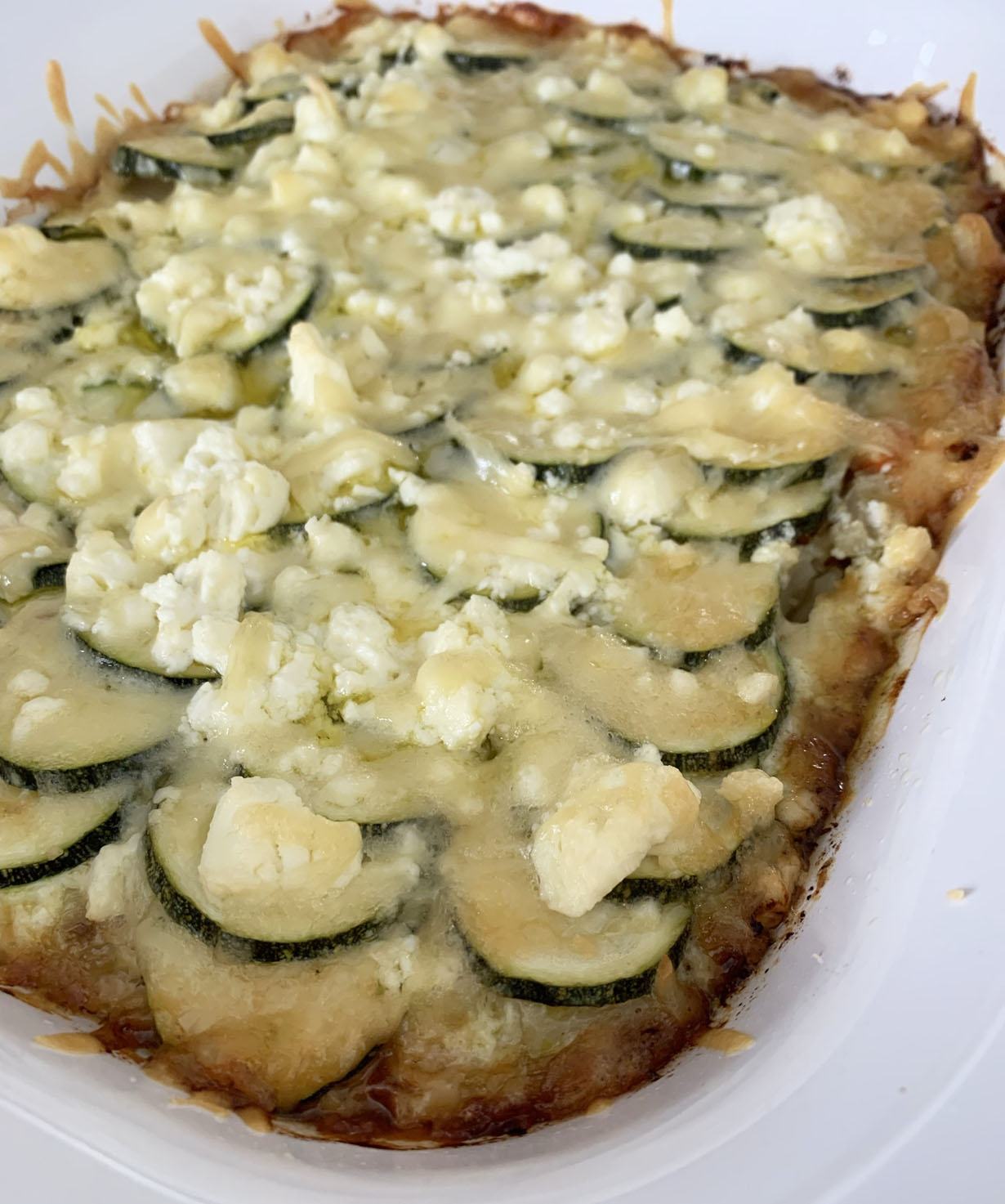 Reminiscent of a frittata, this creamy and delicious bake is an excellent way to make your zucchini. Perfect as a side dish, or great as a meal on its own, it is easy to make and full of healthy vegetables. The feta adds a little bit of salt to an already flavorful dish.